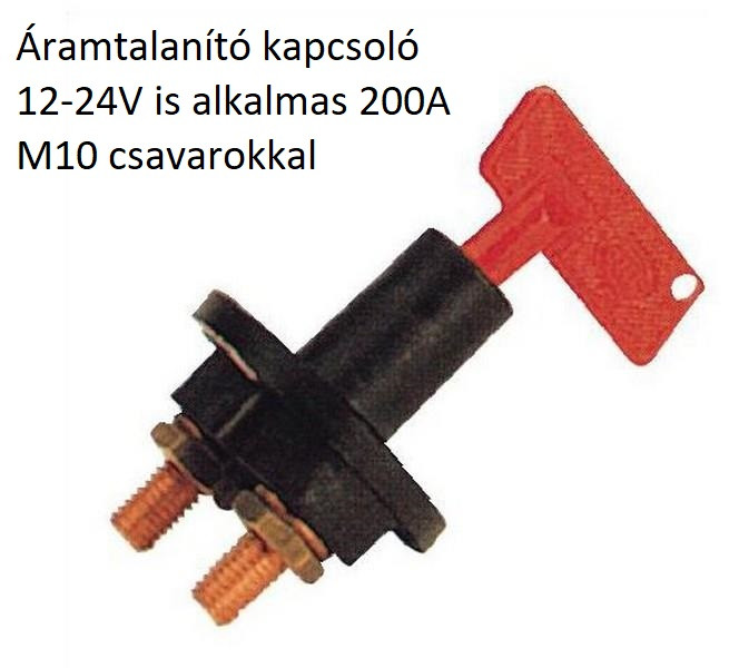 Áramtalanító kapcsoló 24 voltos 200A M10 csavarokkal