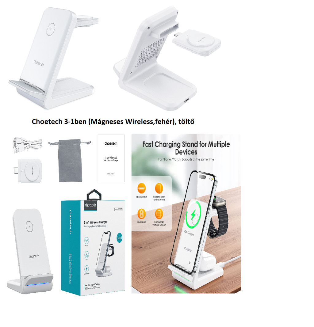 Choetech 3-1ben (Mágneses Wireless,fehér), töltő