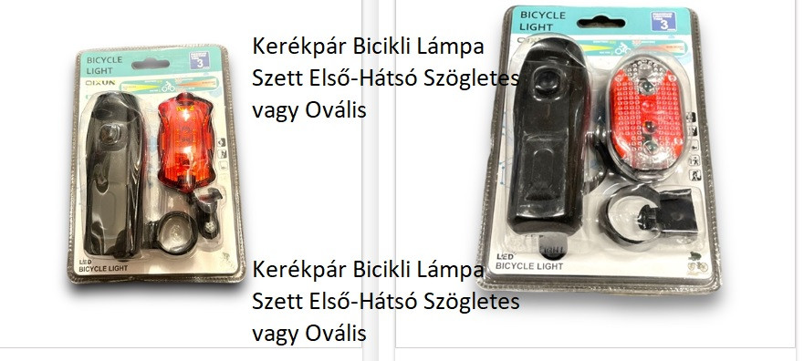Kerékpár Bicikli Lámpa Szett Első-Hátsó Szögletes vagy Ovális