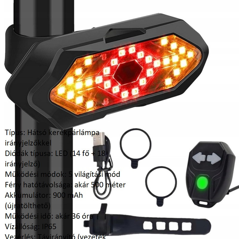 Típus: Hátsó kerékpárlámpa irányjelzőkkel