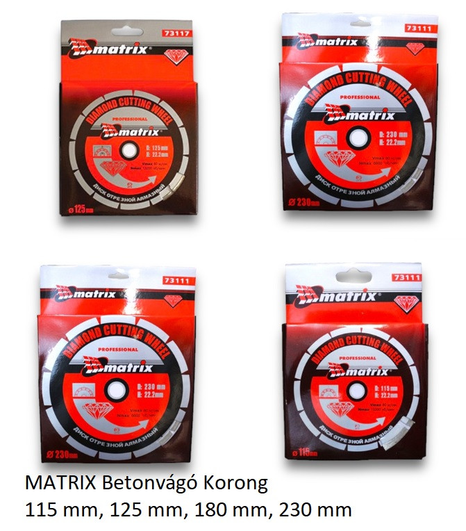 MATRIX Betonvágó Korong 115 mm, 125 mm, 180 mm, 230 mm