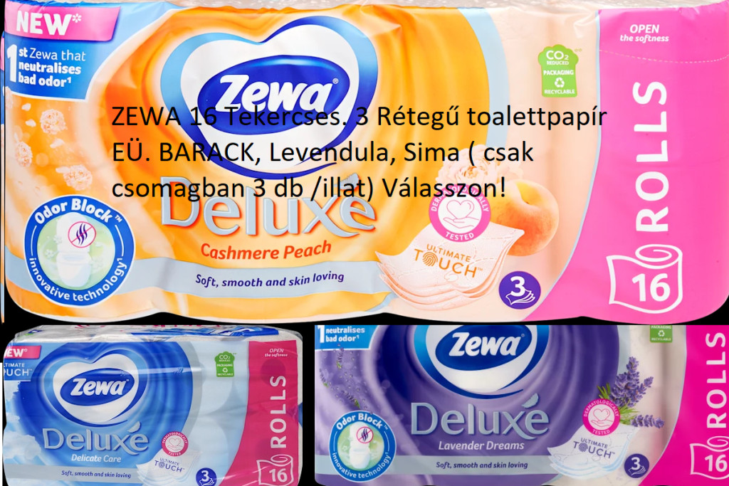 ZEWA 16 Tekercses. 3 Rétegű toalettpapír EÜ. BARACK, Levendula, Sima ( csak csomagban 3 db /illat) Válasszon!